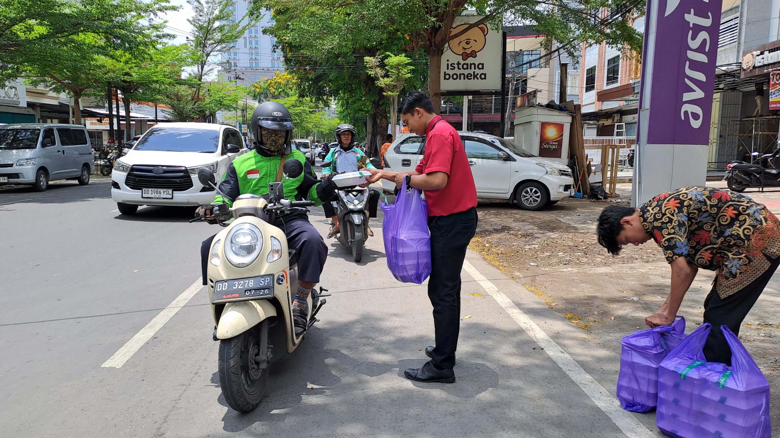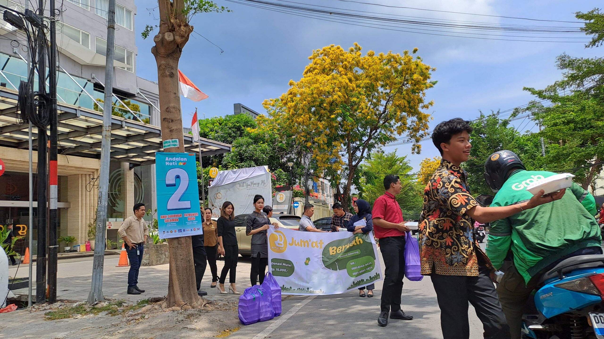 Program “Berbagi Makanan Jumat Berkah,” sebuah inisiatif rutin yang bertujuan untuk memberikan makanan kepada yang membutuhkan sekaligus menghidupkan Usaha Mikro, Kecil, dan Menengah (UMKM) di sekitar hotel.