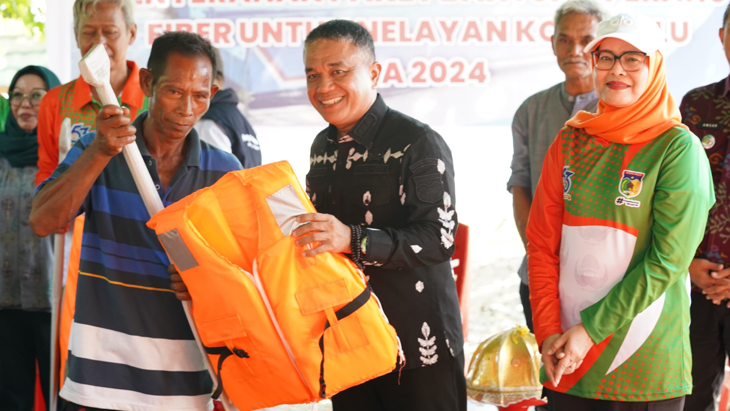 Penyerahan secara simbolis tersebut di tandai dengan penyerahan pelampung beserta dayung oleh Wali Kota Hadianto kepada perwakilan nelayan yang hadir.