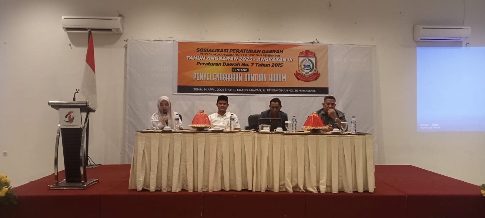 “Kami berharap dengan sosialisasi Perda Penyelenggaraan Bantuan Hukum masyarakat khususnya di Kecamatan Mamajang, Mariso dan Tamalate (Mamarita) lebih bisa mengetahui peraturan dan wadah, di mana mereka bisa mendapatkan bantuan saat mereka berada dalam sengketa perkara,” jelasnya.