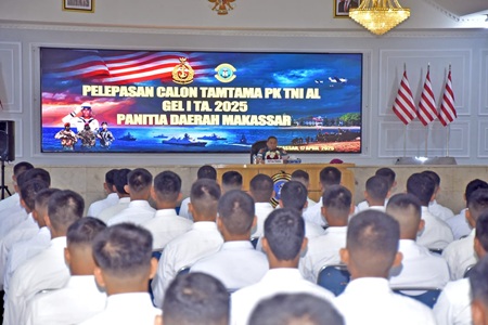 MAKASSAR, NEWSURBAN.ID – Pelepasan Calon Tamtama (Cata) PK TNI AL Gelombang 1 Pria tahun 2025 Panitia Daerah (Panda) Makassar di gelar di gedung Hasanuddin Mako Lantamal VI, Jalan Yos Sudarso No.308 Makassar , Kamis, (17/04/2025).