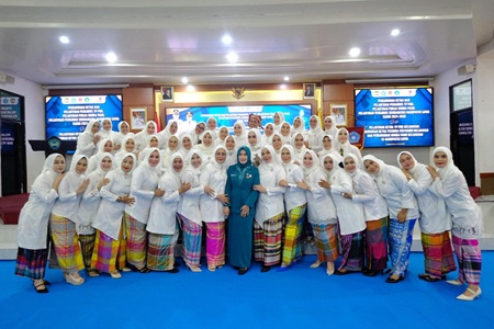 Mereka mengenakan atasan kebaya berwarna putih dengan bawahan rok berbahan kain sutera khas Gowa motif cura la’ba. Puluhan pengurus ini dilantik langsung Ketua Dekranasda Kabupaten Gowa, Andi Tenri Indah Darmawangsyah.