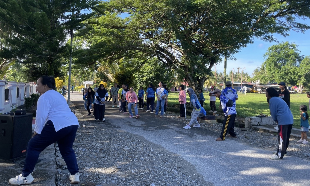 Seperti yang terlihat saat warga bersama ASN memadati halaman Kantor Camat Tomoni Timur untuk mengikuti rangkaian kegiatan SSJ, Sabtu (06/12/2025).