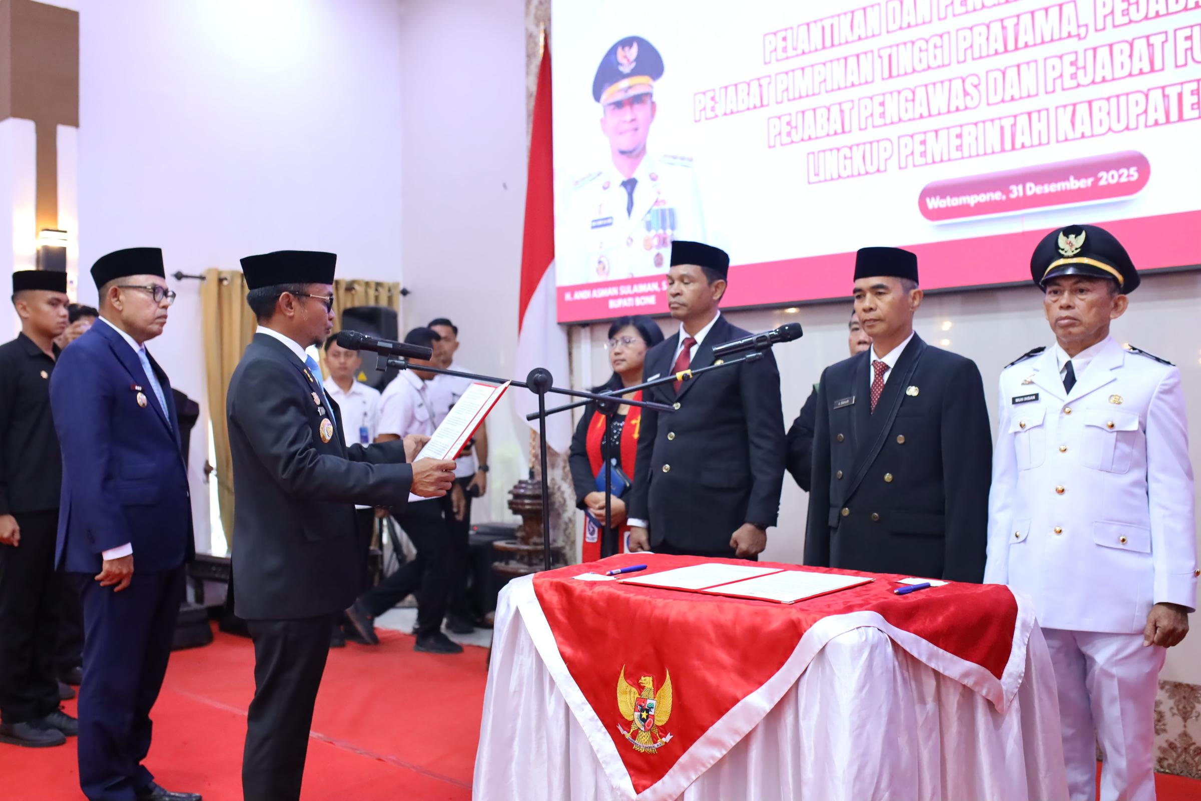 BONE, NEWSURBAN.ID – Pemerintah Kabupaten Bone Sulawesi Selatan di bawah kepemimpinan Bupati Bone H. Andi Asman Sulaiman, bersama Wakil Bupati Bone Dr. H. Andi Akmal Pasluddin, kembali melakukan mutasi dan pelantikan pejabat struktural di lingkup Pemkab Bone, Rabu 31/12/2025.