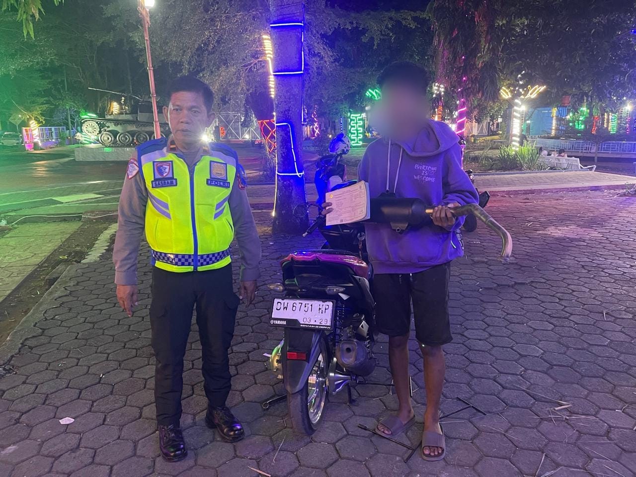 “Jadi para pelanggar diminta mengganti seluruh perlengkapan kendaraan yang tidak standar, Setelah itu mereka langsung diminta untuk menghancurkan sendiri knalpot yang tidak standar dengan dipukul menggunakan batu hingga penyok,” ungkapnya Kamis 5/2/2026.