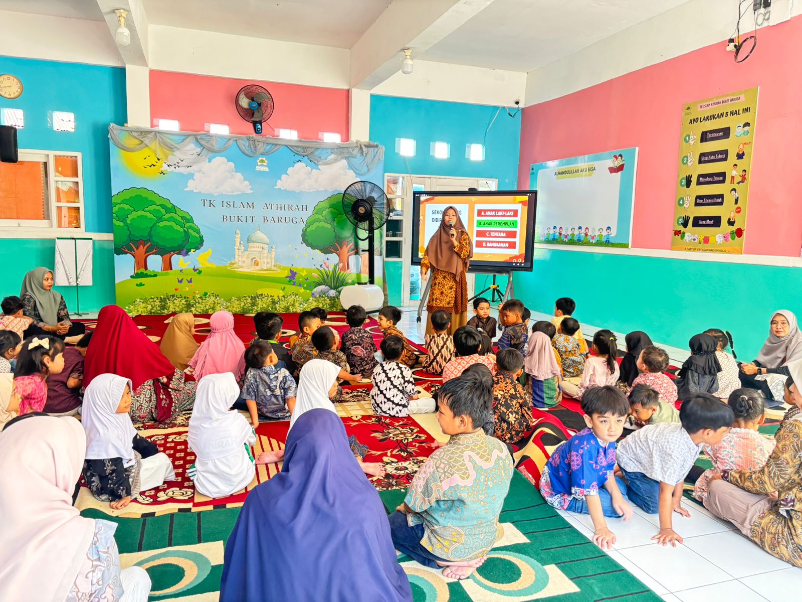 Kegiatan ini disambut dengan antusias oleh anak didik. Tidak hanya belajar tentang sejarah, kegiatan juga dirangkaikan dengan sesi tanya jawab interaktif yang ditampilkan melalui layar smartboard, sehingga anak-anak dapat menjawab langsung dengan penuh semangat. Kegiatan kemudian ditutup dengan menyanyi bersama lagu “Ibu Kita Kartini” yang menambah keceriaan dan kebersamaan di antara peserta didik.