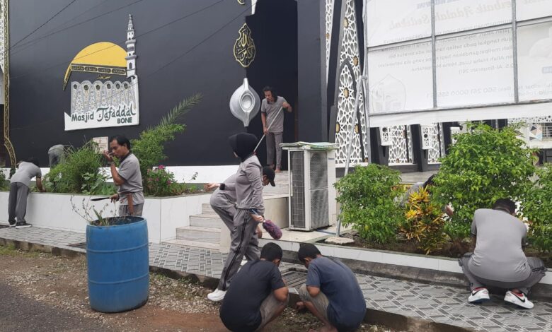 Memperingati HUT Intelkam Polri Satuan Intelkam Polres Bone Gelar Bersih-Bersih Masjid